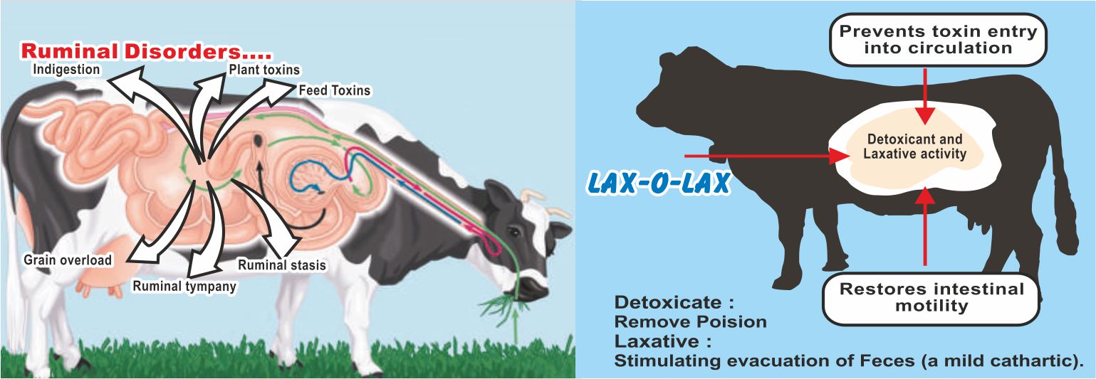 As Laxative & Alimentory Detoxicant : 250 gm for adult animals.